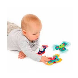 Cuando cumplan más años podrás pegarlos a cualquier superficie lisa y ver cómo dan vueltas sin parar ¡les encanta! Una experiencia fascinante para las manos y los ojos que fomenta las habilidades motoras y la exploración sensorial.