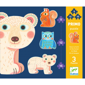 10,95 €-Puzle Primo «Dans la forêt» es un estuche que contiene 3 puzles evolutivos de siluetas de dificultad creciente sobre el tema de los animales del bosque.