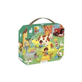 ¿Listos para una excursión a la granja? ¡Un tractor, una multitud de animales y muchos detalles divertidos esperan a tu hijo para entretenerse con una actividad divertida y lúdica! Encuentra a los animales de la granja en este puzle de cartón de 24 piezas. Las piezas son aptas para las manos infantiles a partir de los 3 años: ¡resultan muy fáciles de manipular! Pero ¿cuál es ese animal? ¿Qué hacen los conejitos? Una divertida ayuda para desarrollar la memoria y la destreza de los pequeños. Este puzle lleno de vida viene con un póster que sirve de plantilla: ¡práctico para recomponer el puzle a tu propio ritmo! Viene en un bonito maletín con asa, para poder guardar y transportar las piezas con facilidad. Este adorable puzle está fabricado en Francia. El material de base forestal en este producto es reciclado. Decorado con tintas vegetales, ¡este puzle promete largas horas de diversión!