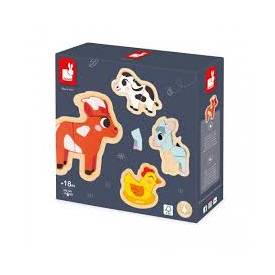 19,99 €¡A partir de 18 meses los niños pueden empezar a disfrutar de los puzles! ¡Son perfectos para desarrollar la motricidad fina y la coordinación! Con este lote de 4 puzzles evolutivos de primera infancia, ¡los pequeños fans de los animales de la granja estarán encantados! Este juego de puzles de madera, que viene en una bonita caja de regalo, consta de cuatro puzles que van de 2 a 5 piezas para que los niños se diviertan y progresen a su ritmo. Están los animales favoritos de los más pequeñitos: una gallina de 2 piezas, una vaca de 3 piezas, una cabra de 4 piezas y un burro de 5 piezas. Las piezas, que hay que posicionar en su sitio en un soporte de madera, son lo bastante grandes como para que el bebé pueda agarrarlas bien. ¡Disfrutará un montón jugando con este juguete de estímulo! Además, con este juguete también podrá empezar a aprender los números. Puzles de madera FSC®.