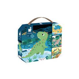 18,99 €¡Un viaje prehistórico espera a tus pequeños exploradores! Con estos 4 puzles evolutivos sobre el tema de los dinosaurios, los niños a partir de 2 años empiezan a explorar el Jurásico. Cada uno de los puzzles, compuestos por 6, 9, 12 y 16 piezas, acompaña al niño en su avance, estimulando así su motricidad fina y su concentración. ¡Un desafío apto para cada edad! Cada puzle tiene un color diferente en la parte posterior, lo que ayuda al niño a armar los 4 puzles. Además, las piezas grandes son perfectas para sus manitas, lo que hace que la experiencia de juego sea divertida y placentera. Es un divertido viaje en el tiempo: imagina la alegría del niño al juntar las piezas para revelar un majestuoso dinosaurio, mientras aprende a reconocer las diferentes especies. Es una excelente forma de combinar juego y aprendizaje. Estos prácticos puzles se venden en un maletín con asa, que permite al niño llevárselos a cualquier parte. Tanto de viaje como al ir a casa de la abuela, el pequeño podrá llevar siempre consigo esta tranquila y estimulante actividad. ¿Todo listo entonces para embarcarse en un viaje en el tiempo con nuestros puzles de dinosaurios? Estos puzzles se fabrican en Francia, se decoran con tintas vegetales y se hacen con cartón FSC™.
