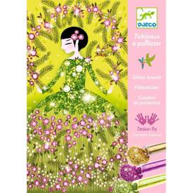 17,95 €-4 cuadros que presentan bonitos vestidos que se iluminan con purpurina de colores. El niño coloca su cuadro en la caja, descubre las zonas adhesivas con la herramienta incluida y aplica los polvos de purpurina siguiendo el código de colores indicado en el folleto. Una vez terminada la actividad, los vestidos brillan y se iluminan con el máximo refinamiento. -Los cuadros se iluminan con purpurina.
