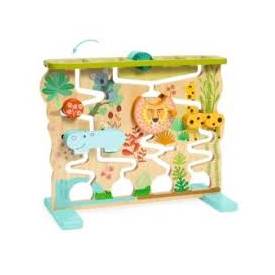 34,95 €Un laberinto de madera con tobogán y discos deslizantes, para niños a partir de 18 meses. El bebé introduce los discos en las "entradas" (3 espacios) en la parte superior del tobogán y luego los deja deslizar hacia abajo. En el centro del laberinto, tres animales detienen los discos. Para liberarlos, el niño debe girar al león, jalar a la jirafa o apartar al hipopótamo para que terminen su alocada carrera. El juego incluye un laberinto de madera con tobogán y dos discos. Los discos se deslizan lentamente hacia abajo, lo que le da tiempo al niño para observarlos. Tres mecanismos para activar: girar al león, jalar a la jirafa o apartar al hipopótamo para terminar esta alocada carrera. Los discos se pueden guardar en los dos espacios adicionales junto a las entradas del tobogán. Apto a partir de 18 meses.