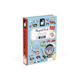 Juego educativo magnético de cartón con la temática de los disfraces para niños. Compuesto por 36 imanes y 8 tarjetas. Una vez se ha abierto el libro, el objetivo del juego es recomponer en la escena el disfraz que indica la tarjeta con ayuda de los imanes. Este producto está hecho de material certificado FSC® y otro material controlado.