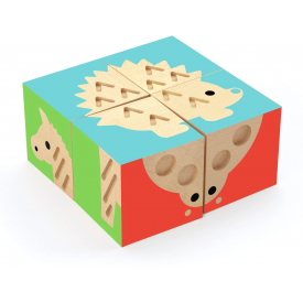 12,95 €-Cuatro cubos de madera ilustrados y grabados con diferentes motivos para que el niño asocie lo visual con el tacto. Al combinar colores y motivos, el niño reconstruye 6 animales. -Cubos grandes fáciles de agarrar. -Los 6 animales tienen colores muy distintos para ayudar al niño a reconstruir fácilmente las imágenes. -Un motivo grabado para cada animal.