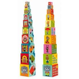 18,95 €-Cubos encajables sobre el tema de los animales y los vehículos. ¡10 cubos de cartón grueso que se encajan, se apilan y se tiran sin parar! El niño apila los cubos de forma que las ilustraciones sigan una serie lógica.