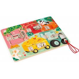 22,99 €Cerraduras, cerrojos, llaves… ¡a los niños les encantan! ¡Así que disfrutarán un montón descubriendo, pensando y experimentando con los animales de la granja en su propio tablero de cerraduras! Para descubrir todos los secretos de este bonito busy board de madera, habrá que conseguir abrir las cinco puertas cerradas con cinco sistemas distintos: ¡llave, pestillo, cadena de seguridad, cierre de palanca y cerrojo! Cada puerta tiene su propio color y su propio número, ¡que se corresponde con el número de crías de animales que se esconden tras la puerta! ¡Un montón de formas distintas de divertirse! Aprender los colores, los números, conocer a los animales de la granja y sus bebés y ejercitar la destreza y la lógica. Esta preciosa tabla de actividades educativa de madera FSC® es ideal a partir de 3 años.