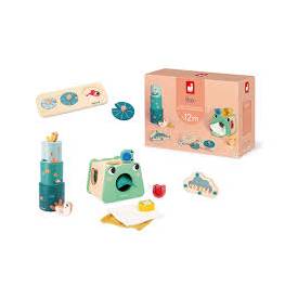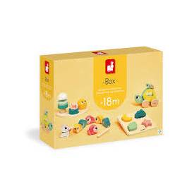 Un conjunto de juguetes pensado para bebés a partir de 18 meses: ¡es la Janod Box! Esta box, especialmente diseñada para perfeccionar la motricidad fina del bebé, contiene 4 divertidos juguetes de estímulo.