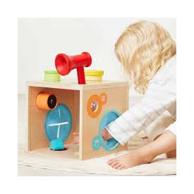 49,99 €Estimule los sentidos de su bebé con esta caja sensorial. Apto para niños y bebés a partir de 18 meses, este cubo de actividades de madera estimula 4 de los 5 sentidos. También se incluyen 12 accesorios para la experimentación práctica. Este juguete educativo es una forma estupenda de fomentar la curiosidad y despertar los sentidos. Para estimular el sentido del olfato, una caja perforada contiene elementos olfativos que un adulto coloca en su interior: especias, frutas, flores, etc. Los olores desempeñan un papel importante en la construcción de la memoria y la identidad de los niños. Para estimular el oído, un megáfono permite experimentar la amplificación de la voz: ¡es muy divertido! En cuanto al tacto, encontrarás 2 entradas a cada lado de la caja (una para cada mano). Dentro de la caja, se colocan las 8 formas incluidas, que luego hay que adivinar a ciegas, ¡o cualquier otro objeto divertido! Por último, para estimular la vista, una mirilla permite ver lo que hay en la caja a través de filtros de colores. Un espejo giratorio, con una cara simple y la otra de aumento, permite observarse de forma divertida. También hay un pequeño caleidoscopio en la caja, para que puedas ver el interior de una forma completamente diferente. Para que entre más o menos luz en la caja, 2 grandes placas (de plástico y madera).
