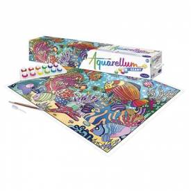 Con este kit Aquarellum Geant, los niños podrán darle un toque de color al maravilloso fondo coral: peces, estrellas y entorno. ¡Con tan solo unas gotas de pintura podrán crear majestuosas obras de arte! Aquarellum se basa en una técnica de estampado de papel vitela que sólo deja que la pintura se adhiera en determinadas zonas: el motivo aparece a medida que el pincel se pasa por encima y se puede repintar hasta conseguir una perfecta armonía.
