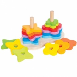 ¡Con estos apilables de bebé de colores, hay infinitas posibilidades para apilar y clasificar! Los peques podrán apilar y construir figuras súper originales con estas piezas en forma de flor y estrella.