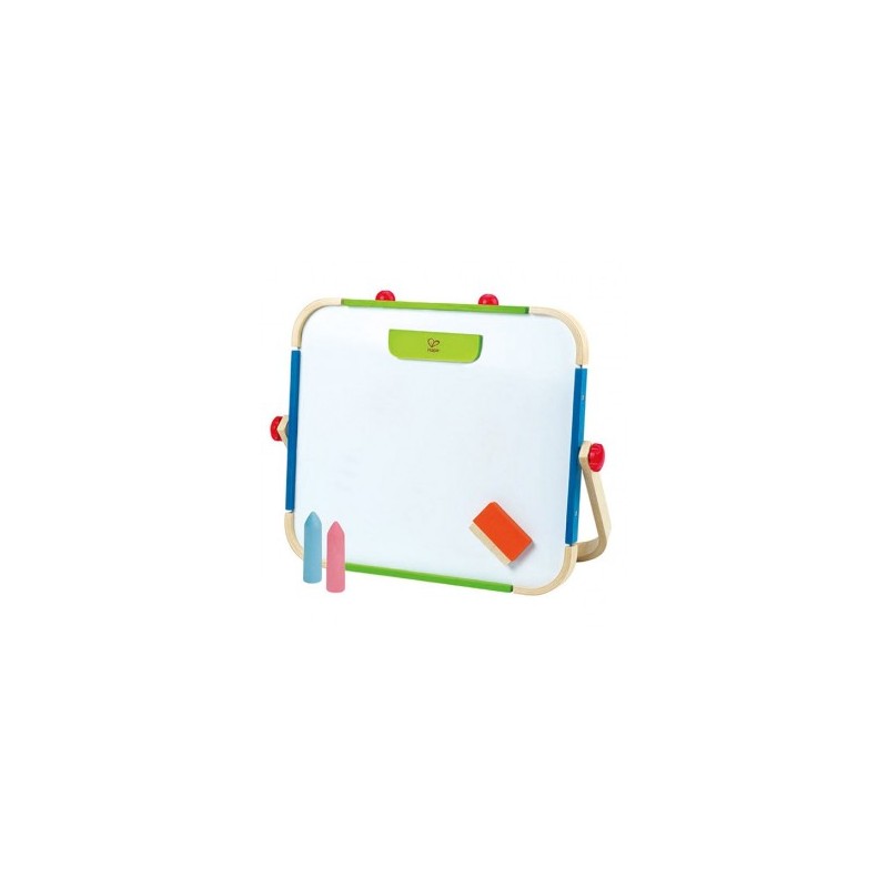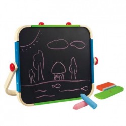 Este tablero de dibujo mantiene a los artistas ocupados con una pizarra blanca, una pizarra de tiza, y figuras magnéticas. ¡Genial para que las mentes creativas puedan pintar on the go!