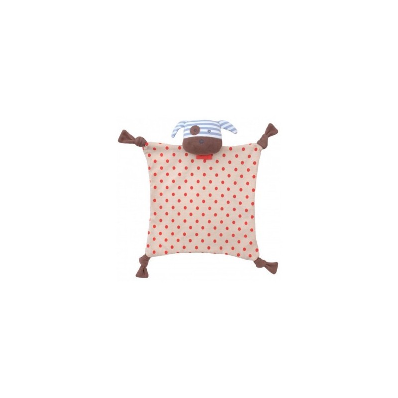 Doudou perrito boxer con nudos en los extremos para facilitar el agarre de las manitas del bebé. ¡Ideal para estimular el desarrollo sensorial y motriz!