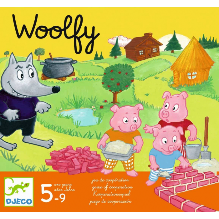 Woolfy es un juego de cooperación donde los jugadores tienen que construir la casa de ladrillo para poder proteger a los 3 pequeños cerditos antes de que el lobo les atrape y los ponga en la olla!