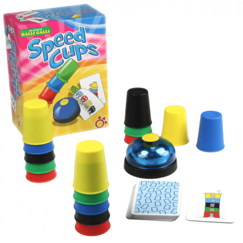 Cada jugador tiene 5 cubiletes de colores y compite por completar el objetivo lo más rápido posible. ¡Hace falta tener buen ojo y reflejos!