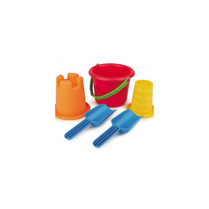 - Incluye 5 piezas: 1 cubo, 2 moldeadores y 2 palas.
