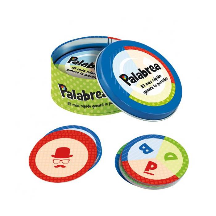 Un divertido juego de cartas de doble cara. En una cara se representan las 10 categorías del juego y En la otra 3 letras de distinto color. Se el primero en encontrar una palabra de la categoría que indica la carta y que comience por la letra del mismo color. ¡Sé el más rápido y conviértete en el SUPERPALABRERO!