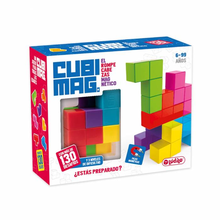 CUBIMAG® es un increíble rompecabezas MAGNÉTICO para ejercitar tu cerebro. 7 piezas para completar los desafíos 3D y mejorar la visión espacial, la concentración y la lógica. ¿Podrás resolverlos todos?