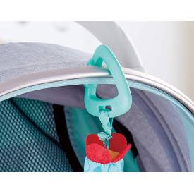 Este divertido sonajero es apto para ser colgado desde cualquier tipo de cuna y cochecito. Es ideal para estimular los sentidos del bebé y promover el desarrollo de su cerebro. Sus colores vivos y los agradables tintineos del anillo cautivarán al bebé y promoverán su interacción con el juguete.