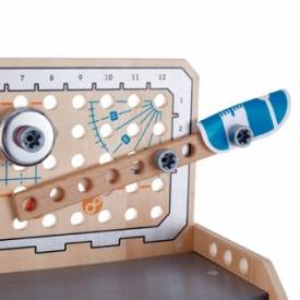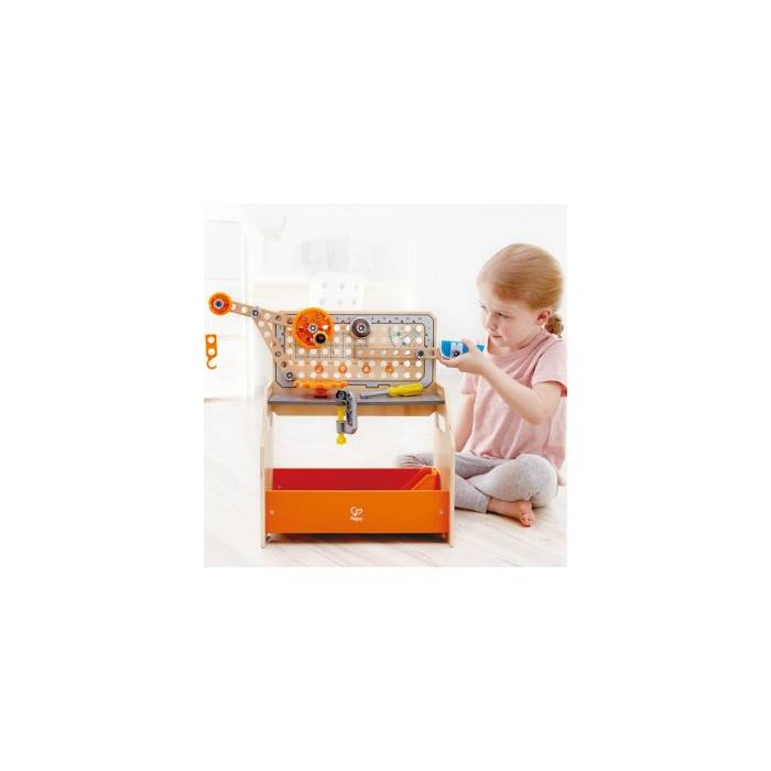 Con este banco de trabajo los peques tienen la oportunidad de descubrir, practicar y experimentar con la mecánica y el bricolaje. El set contiene más de 10 experimentos distintos para hacer. Cuando los niños completen un experimento, aparecerá una nueva y divertida máquina que les enseñará más acerca de los principios científicos.