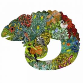 Puzzle Art Camaleón de Djeco es un puzzle de una gran silueta de camaleón dentro de la cual aparece un mundo imaginario. Los puzzles ayudan a desarrollar la concentración, observación y la imaginación.