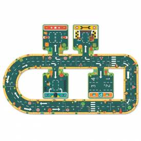 -Un gigantesco puzle compuesto por 21 piezas para montar diferentes circuitos y jugar con sus propios vehículos. ¡En camino! -Múltiples posibilidades de circuitos. -Piezas de cartón muy sólidas y fáciles de montar.