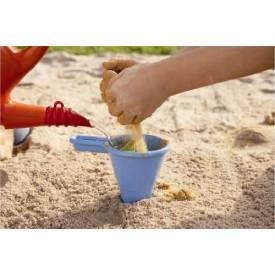 Primero se criba; luego se echa la arena fina, se añade agua y listos: a preparar pasteles de arena, a decorar castillos y a escribir tu nombre en la arena.