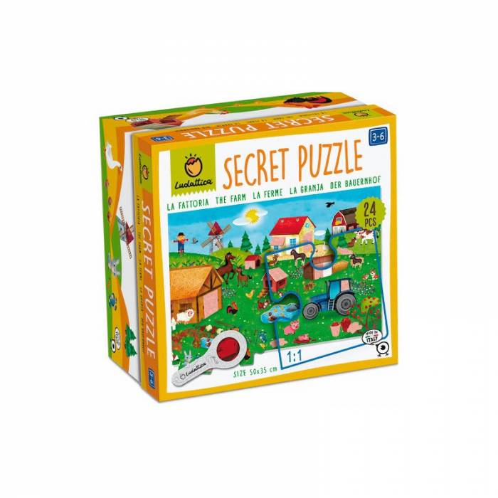 Puzzle con 24 piezas con una lupa de papel mágica para ver objetos escondidos, de Ludattica.
