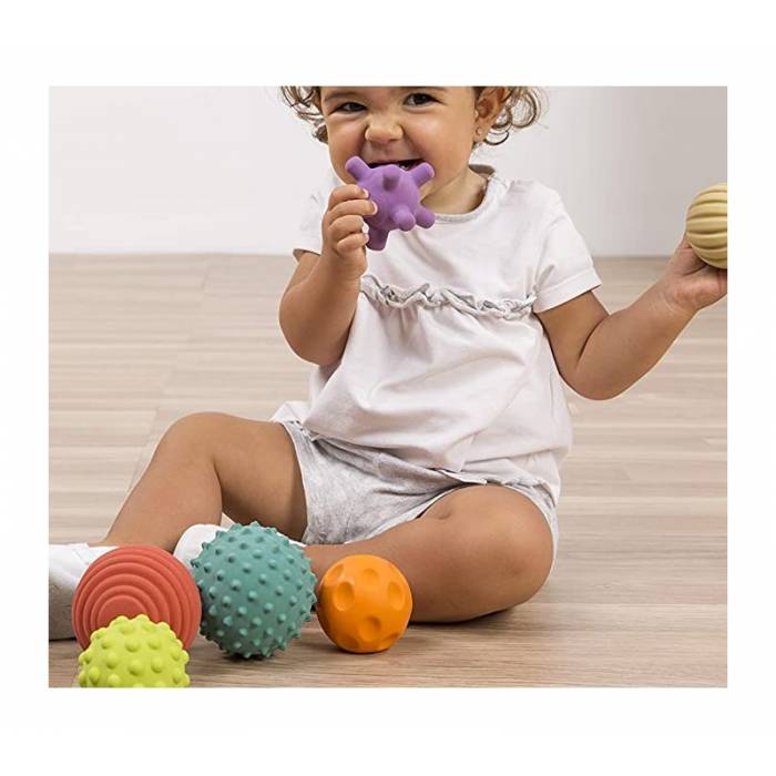 El desarrollo sensorial de los pequeños llega de forma muy divertida y entretenida con estas 8 pelotas sensoriales. Con sus diferentes colores, formas y tamaños, despertarán su curiosidad y les animarán a moverse y desarrollar nuevas destrezas. El tamaño de las bolas las harán fáciles de manejar y su material suave ayudará en el momento de la dentición. 4 bolas de 8 cm y 4 bolas de 10 cm.