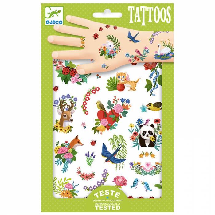 Set de 2 láminas con múltiples tatuajes de temática primaveral, tan realistas que parecen dibujados a mano.