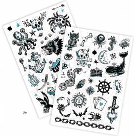 Para colocarlo basta con cortar el tatuaje elegido, despegar suavemente la película transparente superior, aplicar el dibujo sobre la piel y mojar el reverso. Apretar con firmeza durante 30 segundos, retirar el papel delicadamente y lucir el tatuaje.