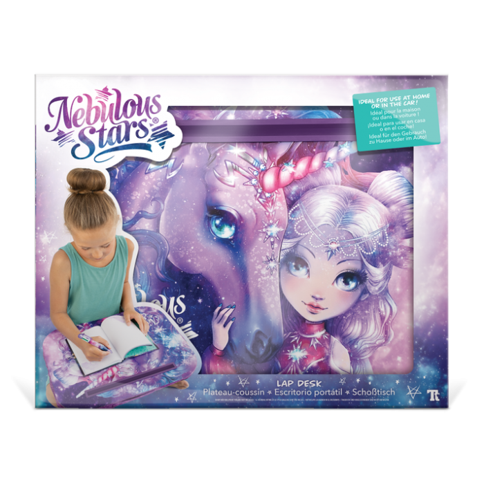 Este práctico escritorio portátil está equipado con un soporte para lápices o para la tableta. Es perfecto para colorear, hacer los deberes, utilizar el ordenador portátil, comer y mucho más. Una base acolchada cómoda mantiene el escritorio portátil en su sitio y puede utilizarse en casa o en el coche.