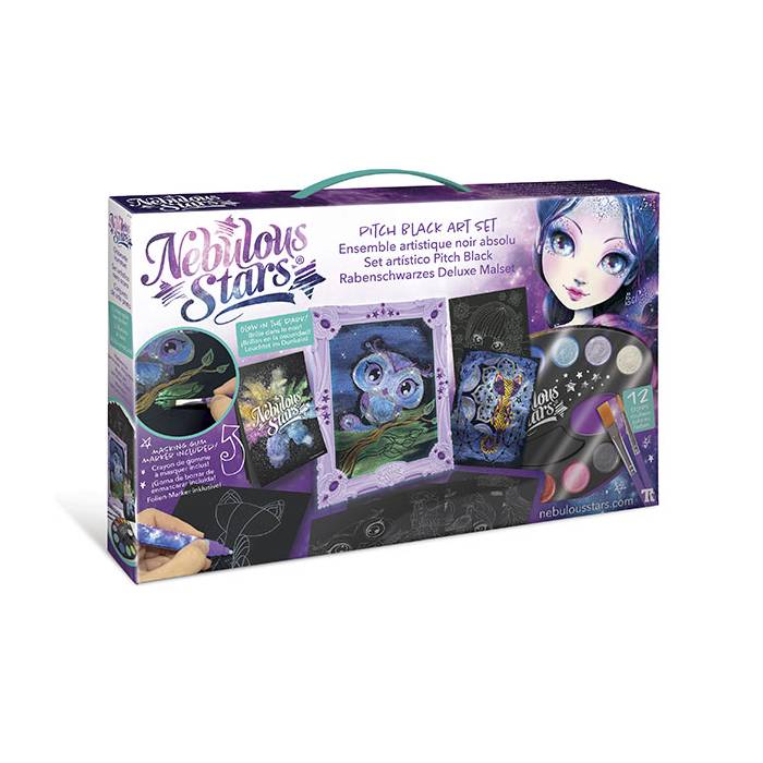 ¡Qué bonitas creaciones van a poder realizar los peques con este kit de acuarelas! Y además, las estrellas y dibujos brillarán en la oscuridad. Este juego de pintura contiene 20 láminas de acuarela mágicas que brillan en la oscuridad, una paleta de colores metálicos y mucho más: ¡simplemente todo lo que necesitan para crear una gran obra de arte!