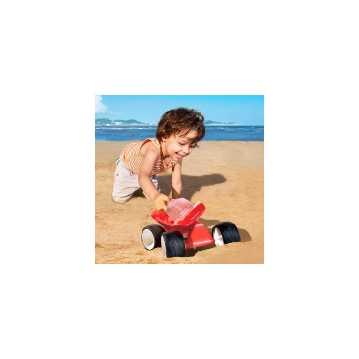 - A los peques les encantará las grandes ruedas que giran de forma independiente y que hacen que el bugui pueda sortear los pequeños montículos y colinas en la arena.