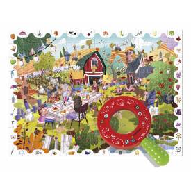 Todos a trabajar que en la granja siempre hay mucho que hacer. Lo primero: montar este estupendo puzzle de 108 piezas, y después coger la lupa especial y a descubrir todo los objetos ocultos en cada uno de sus rincones. Un rompecabezas ideal para desarrollar la motricidad, la capacidad de observación, el lenguaje y la imaginación.