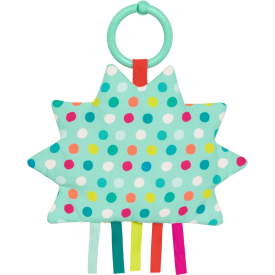 Un sol colorido y suave para manos pequeñas. La tela suave y las cintas de colores desarrollan habilidades táctiles y auditivas. Da la vuelta al sol y descubre un arco iris de puntos estimulantes. Lavable en la lavadora.