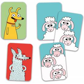 Con el juego de cartas Swip’Sheep de Djeco el ganador será aquel que consiga más ovejas. Los perros actúan como defensores, los lobos atacan, hemos de conseguir mantener nuestras ovejas y arrebatar las de nuestros rivales. De 3 a 5 jugadores.