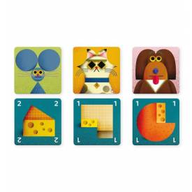 – La carta no debe salir de la superficie de juego. Al acabar el turno robas una carta. Cando se completa la superficie de juego se termina la partida y se pasa al recuento de puntos eliminando 1. Todas las cartas de gato adyacentes a las cartas de perro. 2. Todas las cartas de ratón adyacentes a las cartas de gato. 3. Todas las cartas de queso adyacentes a las cartas de ratón. Los jugadores suman los puntos de las cartas de queso que les queden en la superficie de juego.