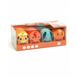 Representan 4 animales: jirafa, gallina, conejo y caballo.