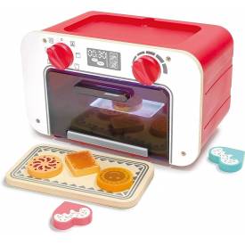 PRECAUCIÓN: No apto para niños menores de 3 años. Piezas pequeñas. Peligro de asfixia. Lavar a fondo todas las partes del producto que no sean de madera antes del primer uso. Utilizar sólo como juguete. No utilizar con comida de verdad ni con un horno de verdad. Retire el embalaje antes de dar el juguete a su hijo. Guarde esta información en un lugar seguro. La decoración y los colores pueden variar.