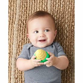 El sonajero emite sonidos divertidos y es especialmente fácil de sostener para las manos pequeñas. Favorece el desarrollo de la motricidad fina y gruesa y no contiene PVC ni ftalatos.
