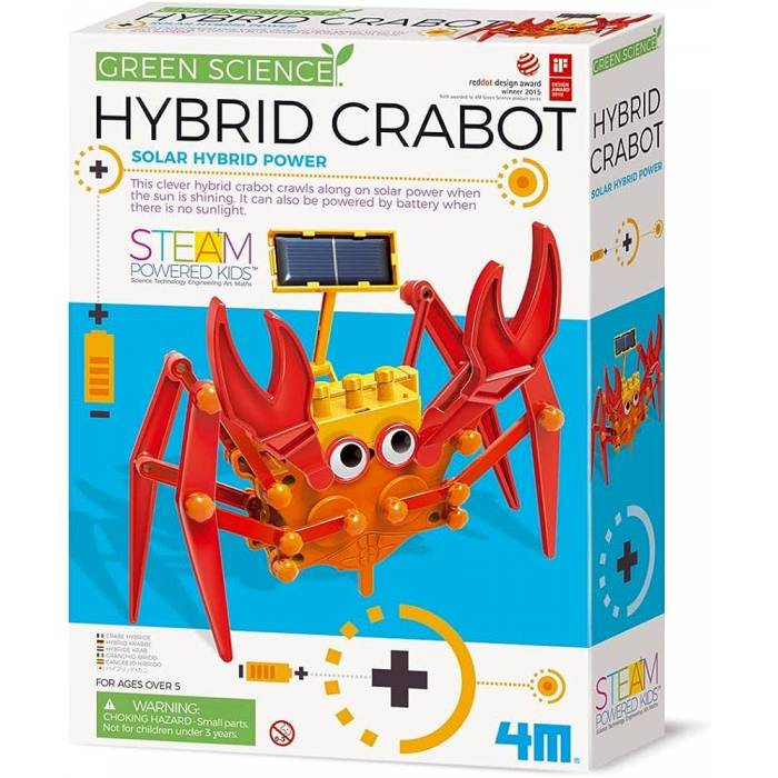 Este ingenioso cangrejo híbrido se arrastra a lo largo de la energía solar cuando el sol está brillando. También se puede alimentar con batería cuando no hay luz solar.