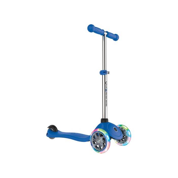 Globber Primo Lights Patinete 3 Ruedas Azul. Patinete Globber Primo Lights ruedas con luces ( se encienden al girar la rueda ) Excelente patinete para los más pequeños, + 3 años y máximo 50kg. El manillar se regula en altura, la dirección es asistida y se puede bloquear y desbloquear según necesidad. Características: – Plataforma baja. – Bloqueo de dirección. – Manillar de altura regulable. – Dirección con potencia asistida. Dimensiones: 55cm x 23cm x 78cm. Peso máximo: 50Kg. Manillar regulable de 67,5cm a 77,5cm.