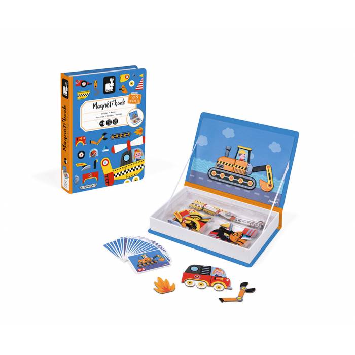 ¿Y si jugamos a inventarnos profesiones? ¿Cuál será la combinación más inesperada que se les ocurra a los niños? Con este Magnéti'Book dedicado a los oficios, los niños a partir de 3 años descubrirán 16 ocupaciones, además de imaginarse un montón más. Los Magnéti'Books son unos estuches magnéticos con un montón de imanes que se colocan en una superficie magnética. Primero, los niños se divertirán reconstruyendo las tarjetas de ejemplo: para ello tendrán que encontrar los elementos correspondientes y ponerlos en su sitio. ¡Luego pueden dar rienda suelta a su imaginación y crear sus propias combinaciones de actividades combinando las piezas magnéticas! ¡Los 48 imanes y las 16 cartas del juego se guardan en el práctico estuche, que se cierra fácilmente y se puede llevar a todas partes! Este juego educativo magnético está hecho con cartón FSC®.
