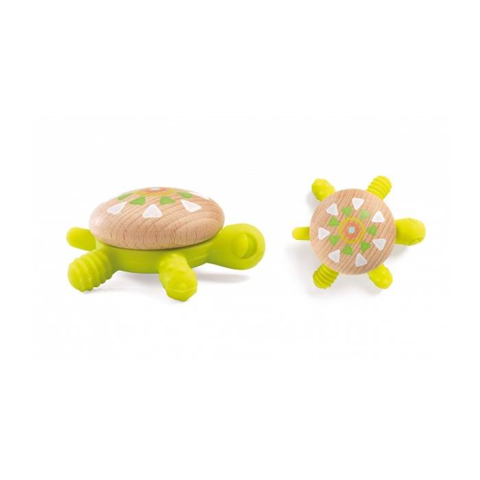 El mordedor BabyTorti de Djeco es un precioso juguete de madera natural y silicona verde que suavizará la dentición de tu bebé. Mordedor de tortuga de fácil agarre para manos pequeñas. El sonajero está empaquetado en una caja transparente.