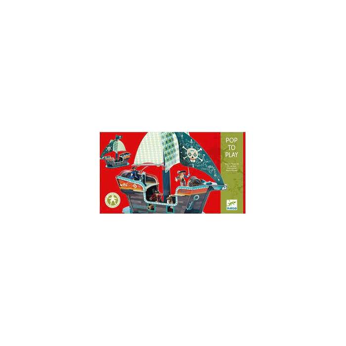 Djeco nos trae este Barco Pirata, de la línea Pop to Play. Fabricado en cartón macizo súper resistente, de fácil montaje y muy completo.