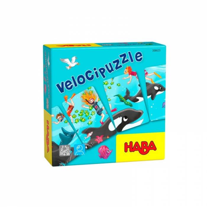 Velocipuzzle es un juego de mesa para niños de Haba en donde los niños/as tendrán que ordenar sus cartas de la forma más rápida posible para completar el puzle.