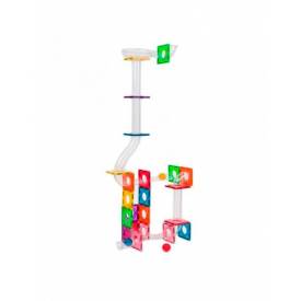 - Contiene: 2 toboganes curvos, 8 semi toboganes, 3 pelotas, 1 cuadrado, 1 base esférica, 21 ventanas circulares, 8 toboganes rectos largos, 4 toboganes rectos pequeños, 2 toboganes giratorios.