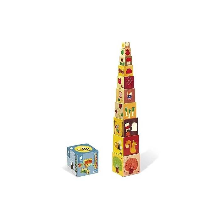 Pirámide de cartón. 10 cubos apilables para descubrir la primavera, el verano, el otoño y el invierno. Cada pieza está hermosamente ilustrada con los animales, las plantas y las características de cada estación. Su hijo también podrá colocar unos cubos junto a otros para crear un magnífico fresco. Con esta pirámide, ¡su hijo aprenderá a desarrollar sus capacidades motrices y su imaginación divirtiéndose al mismo tiempo! Este producto está hecho de material certificado FSC® y otro material controlado.