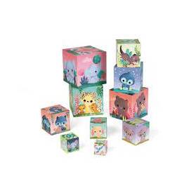 Hacer pirámides altas, muy altas y luego… ¡derribarlas! ¡Qué juego tan divertido para los más pequeños! Es algo que les encanta y además pueden divertirse apilando y encajando cubos con esta bonita pirámide de cartón pensada para niños a partir de 12 meses. Se divertirá apilando los 10 elementos, de mayor a menor, para construir una fantástica pirámide de cubos en tonos pastel. El pingüino, el jaguar, el oso, el elefante… todos estos preciosos animalitos conquistarán al niño con sus tiernos ojitos y con sus lindos bebés. Además, cada cubo lleva un número en la parte de arriba para que el niño se familiarice con los número del 1 al 10. Al apilar y al sumergirse en este hermoso universo, también desarrollará la motricidad y la imaginación mientras se divierte. Este producto está hecho de material certificado FSC® y otro material controlado.